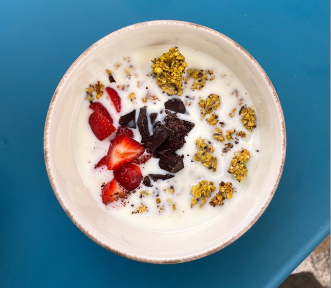 - σοκολάτα γάλακτος, αποξηραμένη μπανάνα και αμύγδαλο φιλέ